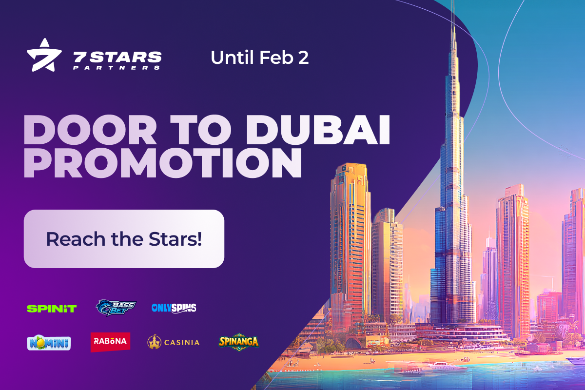 7StarsPartners, the leading multi-brand affiliate program, is thrilled to announce the Door to Dubai Promotion – designed to maximize affiliate earnings and help partners reach the next level of success.
