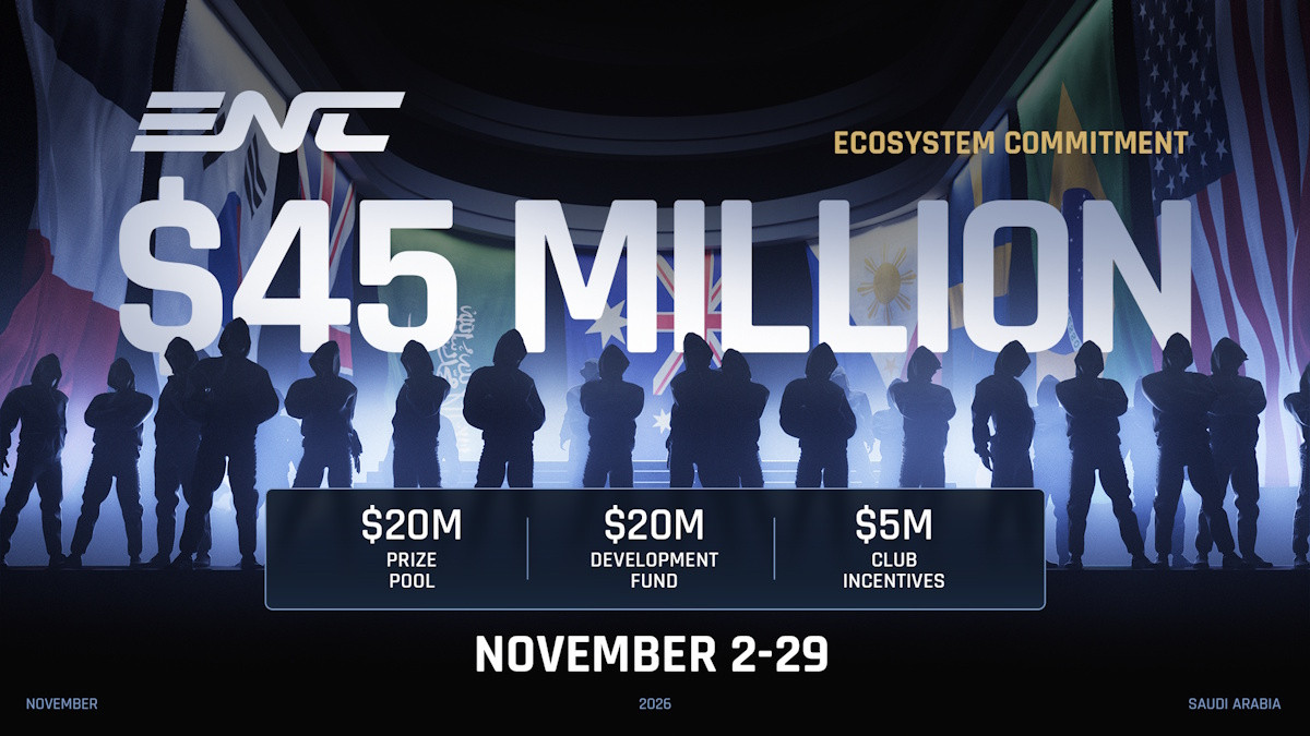ENC 2026 is backed by a three-part funding commitment totaling $45 million, structured to support the esports ecosystem through player and coach prizing, Club release incentives, and national team development.