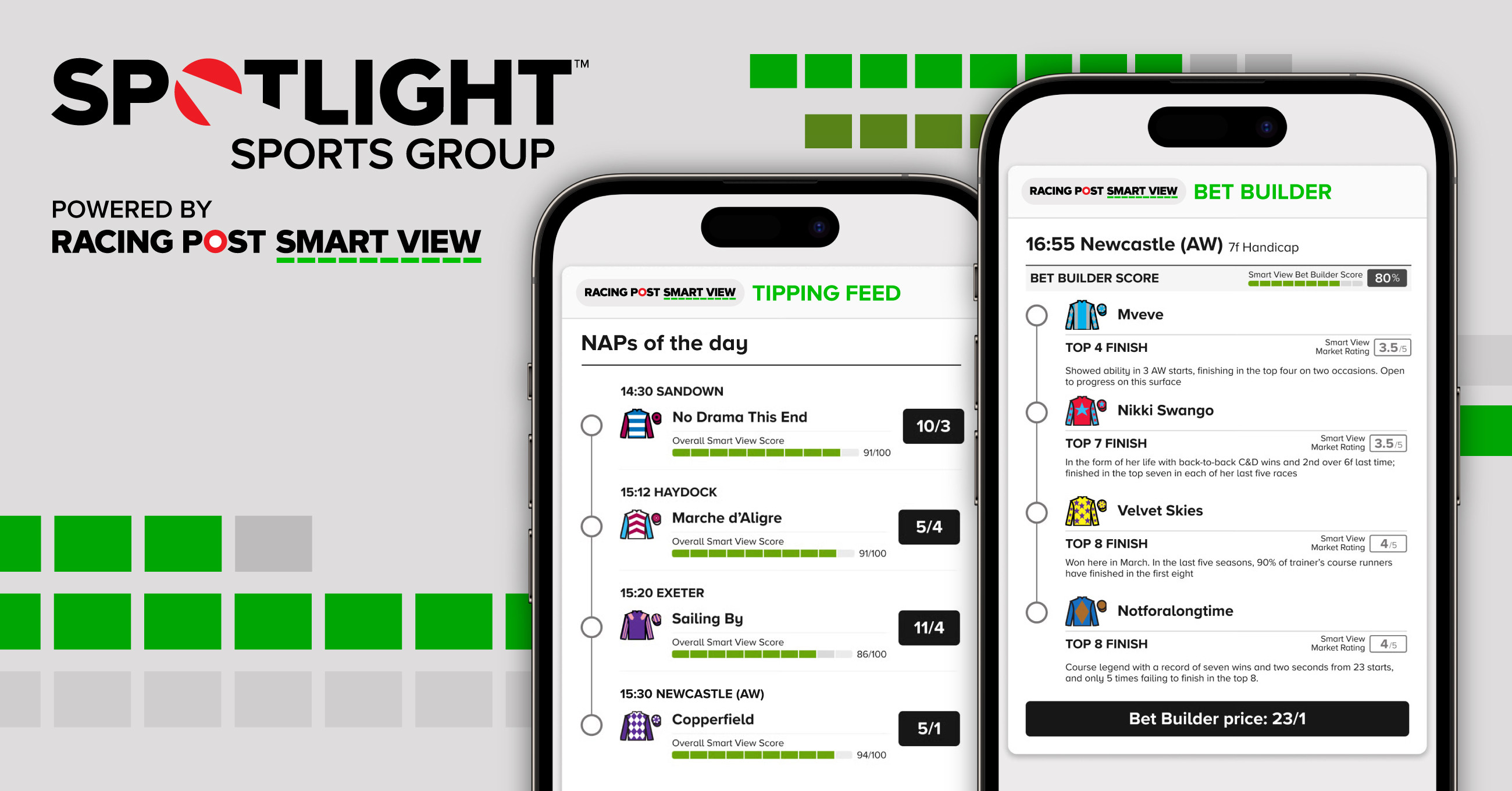 Smart View Tipping Feed and Racing Bet Builder will be made available to operators this month, marking a significant step in Spotlight Sports Group’s racing technology offering as it enters Racing Post’s 40th anniversary year.